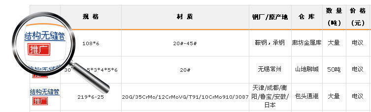 搜鋼推廣是蘭格搜鋼推出的旨在幫助鋼鐵生產(chǎn)、流通企業(yè)增加貿(mào)易機(jī)會(huì)和品牌知名度的網(wǎng)絡(luò)推 廣服務(wù)。搜鋼推廣以精準(zhǔn)著稱,讓企業(yè)以少量的投入獲得巨大的回報(bào)。