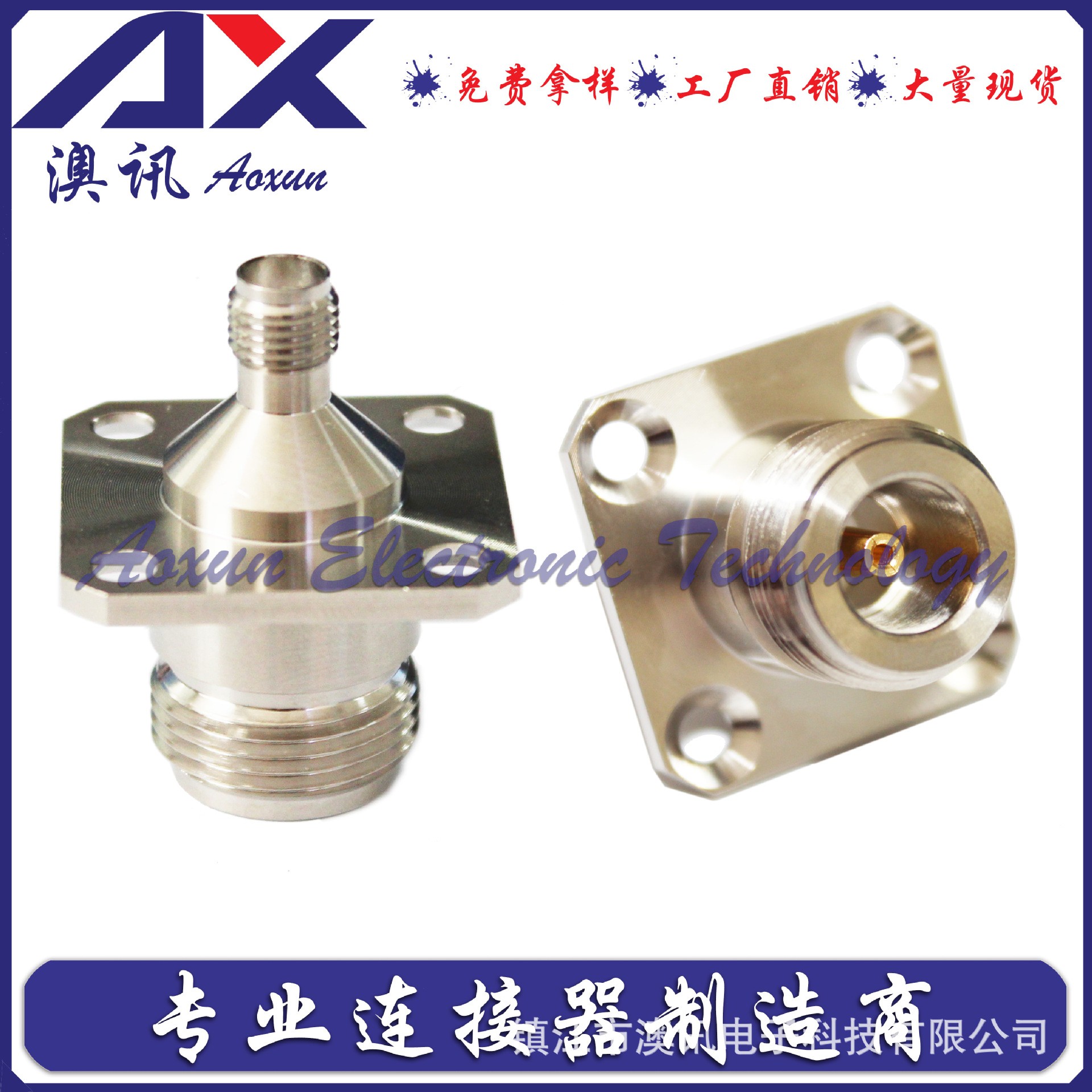 您好,歡迎來到鎮(zhèn)江市澳訊電子科技有限公司,我們?yōu)槟峁└黝惿漕l同軸連接器的設(shè)計(jì)、研制、開發(fā)、生產(chǎn)、銷售。 Hello, welcome to Zhenjiang Aoxun Electronic Technology Co., Ltd. We provide you with the design, research, development, production and sales of various types of RF coaxial connectors.